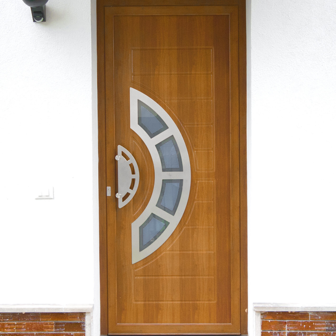 • Portoncini d’ingresso in alluminio per case singole e villette, con pannelli decorativi Royal Aluform a Vostra scelta, vetrati o ciechi, con serrature di sicurezza a più punti di chiusura, soglie termiche, complete di pomoli, maniglie o maniglioni decorativi.